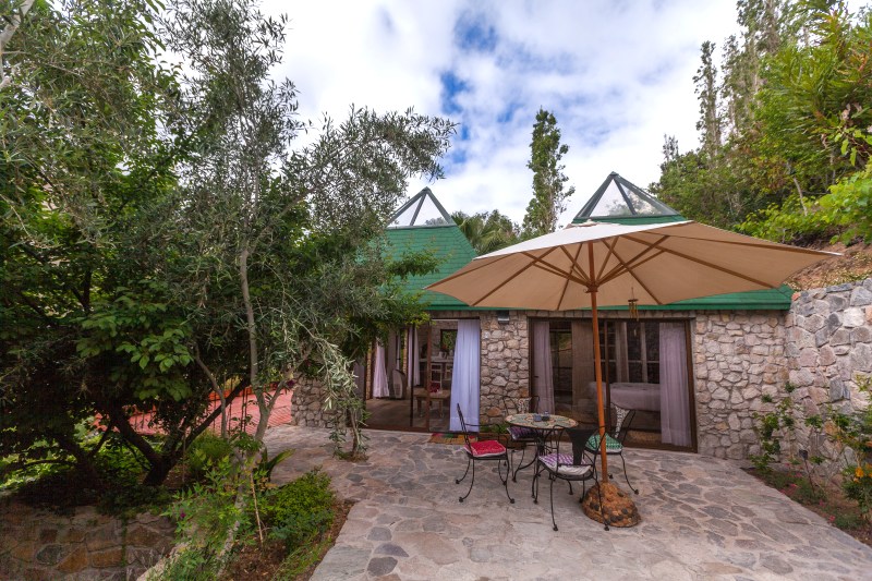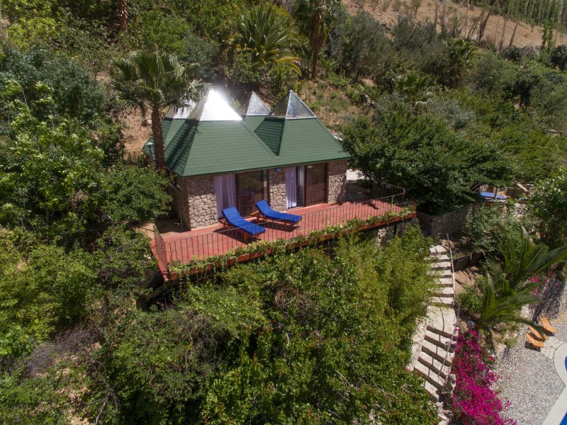 The cabin offers a spectacular view over the valley, the pool and the gardens.