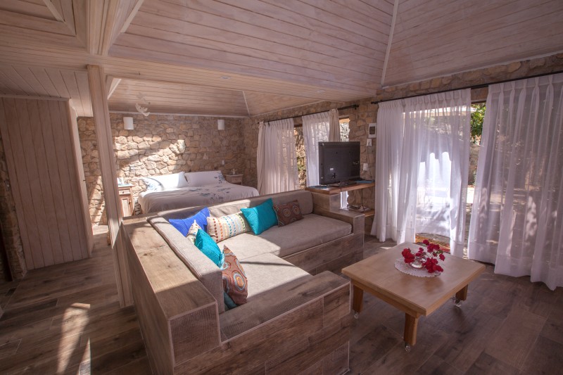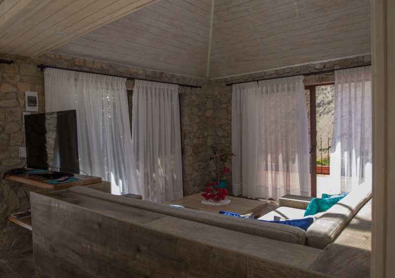 The bungalow is equipped with a king-sized double bed, high-quality bed linen, air condition, a fully equipped kitchen/living room, spacious bathroom, intercom, fan, TV, heating, BBQ and a big terrace with table to eat outside.